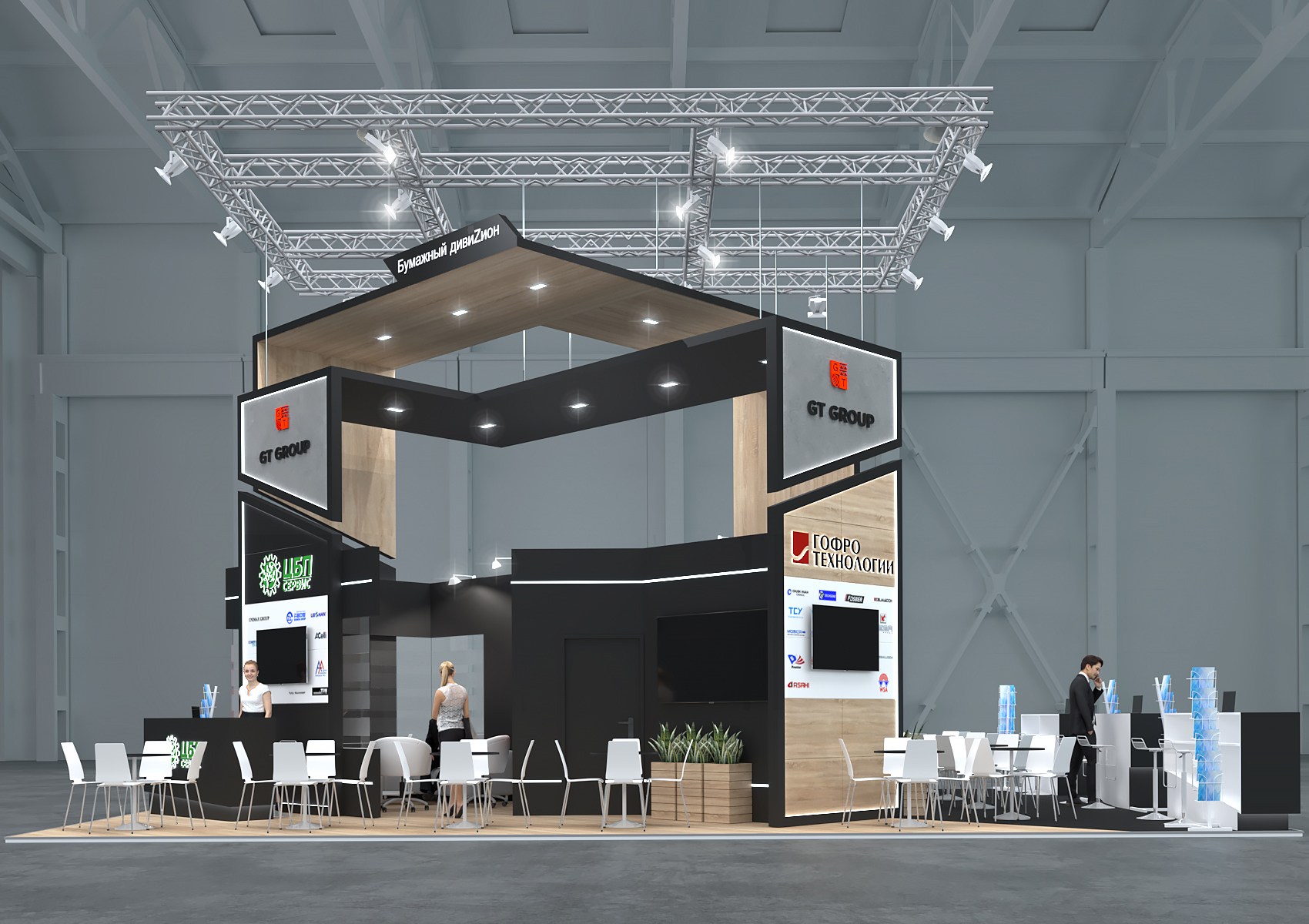Дизайн стенда, проектирование, согласование технической документации, монтаж, сопровождение на выставке, кейтеринг, клининг, демонтаж